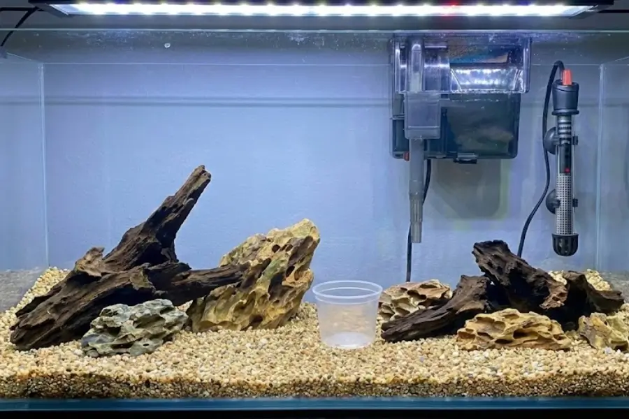 – Install Equipment: Place your filter and heater in the tank according to the manufacturer’s instructions, but do not plug them in yet.